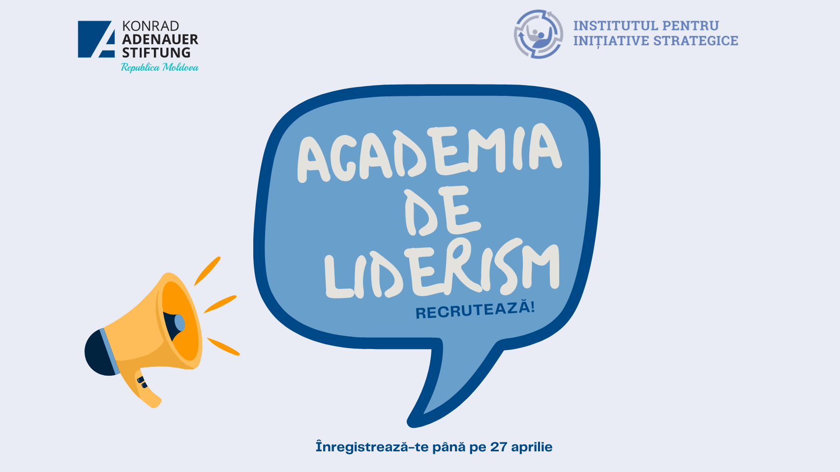 IPIS și FundațiA Konrad Adenauer în Republica Moldova, lansează o nouă ediție a Academiei de Liderism. Sunteți tineri, activi civic sau politic. Vreți să învățați cum se construiește un stat democratic, cum se dezvoltă politicile publice, cum comunici eficient și cu impact, și cum devii un lider responsabil într-o țară care se schimbă? Academia de Liderism este un program de formare dedicat tinerilor profesioniști din Republica Moldova, care vor să contribuie activ la viața politică și civică a țării. Programul durează 12 luni (aprilie 2026 – martie 2027) și reunește 19 participanți selectați printr-un proces transparent și echitabil. 📚 Ce vei învăța? ✔️ Cum funcționează democrația, instituțiile statului și procesul de integrare europeană ✔️ Cum se construiesc și se comunică politicile publice ✔️ Cum vorbești în public, cum gestionezi relațiile publice și cum faci față dezinformării ✔️ Cum folosești responsabil inteligența artificială și comunicarea digitală în politică 📅 Cum arată programul? Pe parcursul celor 12 luni, vei participa la 3 seminare de weekend (în afara Chișinăului) și 7 sesiuni de o zi în Chișinău, în total, 13 zile de formare intensivă, cu experți, simulări, dezbateri și exerciții practice. 👥 Cine poate aplica? Programul este deschis tuturor tinerilor cu vârsta de până la 35 de ani care sunt: ✔️ Studenți în ultimul an al ciclului de licență ✔️ Studenți masteranzi ✔️ Absolvenți de licență sau masterat În plus, candidații trebuie să: 🔹 Fie implicați în activități civice, politice sau comunitare 🔹 Fie pregătiți să investească timp și energie […]